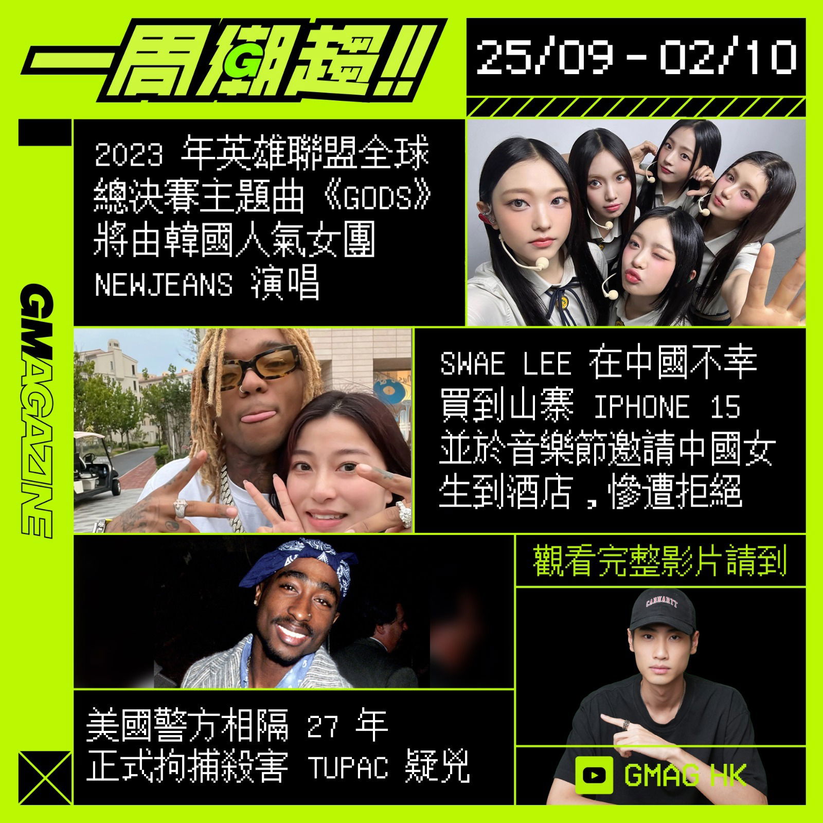 新一集《一周潮趨》25/09 - 02/10 已經出咗啦,今集我地直接同大家精選十件潮流時事深入探討,當中包括:SHAE LEE 在中國不幸買到山寨 IPHONE 15,並於音樂節邀請中國女生到酒店,慘遭拒絕?美國警方相隔27年正式拘捕殺害 TUPAC 疑兇?